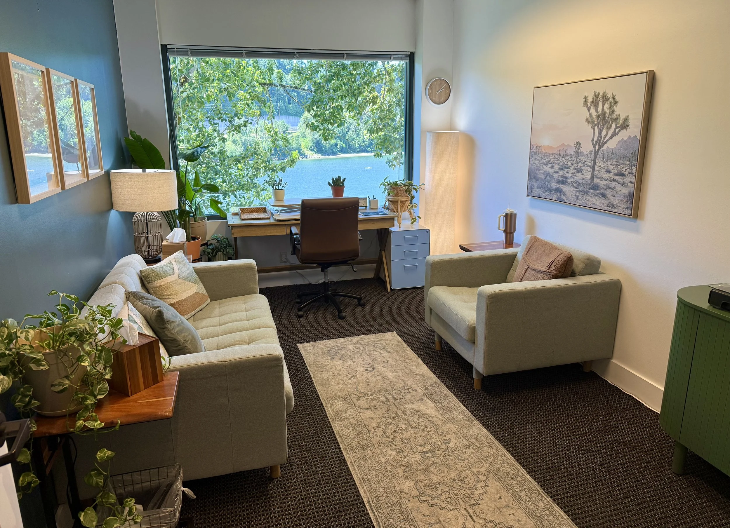 My office for in-person sessions overlooks the Willamette River and is stocked with complimentary tea for your session.